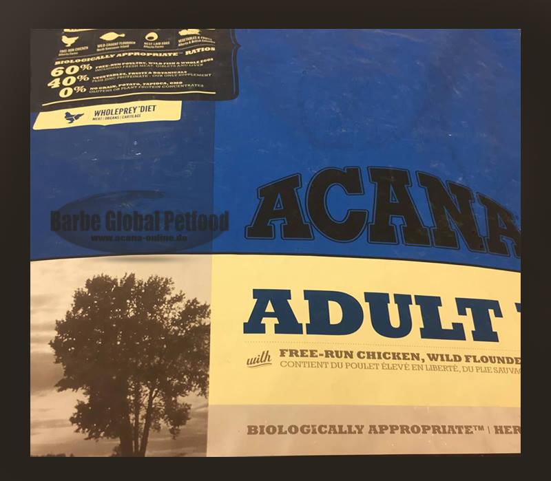 rote Linsen, ganze grüne Erbsen, ganze Kichererbsen, frische Hühnerinnereien (Leber, Herz) (5,5%), getrocknetes Heringprotein (5%), Hühnerfett (5%), getrocknetes Truthahnprotein (5%), Eier (4%), rohe Flunder (4%), Fischöl (3%), ganze grüne Linsen, ganze gelbe Erbsen, Erbsenfaser, Erbsenstärke, rohe Truthahnleber (0,5%), Salz, getrockneter Seetang, frische ganze Äpfel, frischer ganzer Butternußkürbis, frische ganze Karotten, frische ganze Birnen, frischer ganzer Gartenkürbis, frische ganze Zucchini, frische rote Beete Blätter, frischer Grünkohl, frischer Spinat, frische Radieschenblätter, frische ganze Heidelbeeren, frische ganze Moosbeeren, frische ganze Saskatoon-Beeren, Klettenwurzel, Lavendel, Eibischwurzel, Mariendistel, Hagebutte, Kurkuma.